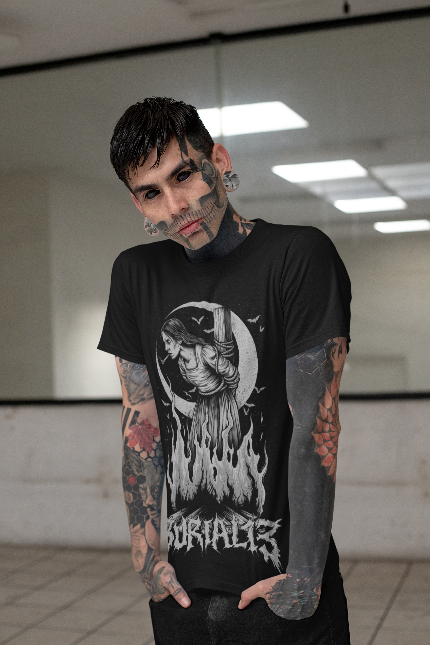 Printed on premium black cotton, this shirt is made for those who refuse to dim their light — no matter the trials. With razor-sharp artwork and the word mark Burial 13 blazing across the bottom, this piece is equal parts statement and style.